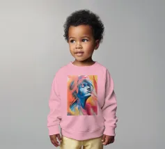 Onze baby sweatshirts bestaan uit 85% biologisch katoen en 15% gerecycled polyester.