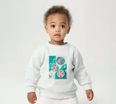 Onze baby sweatshirts bestaan uit 85% biologisch katoen en 15% gerecycled polyester.