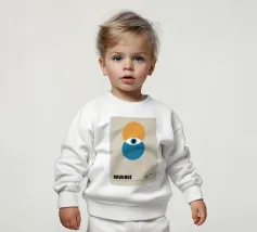 Onze baby sweatshirts bestaan uit 85% biologisch katoen en 15% gerecycled polyester.