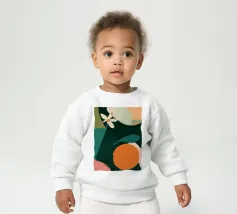 Onze baby sweatshirts bestaan uit 85% biologisch katoen en 15% gerecycled polyester.