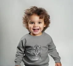 Onze baby sweatshirts bestaan uit 85% biologisch katoen en 15% gerecycled polyester.