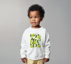 Onze baby sweatshirts bestaan uit 85% biologisch katoen en 15% gerecycled polyester.