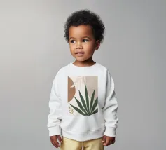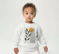 Onze baby sweatshirts bestaan uit 85% biologisch katoen en 15% gerecycled polyester.