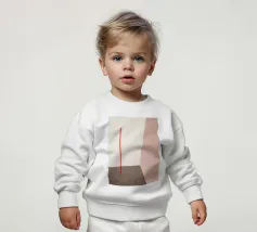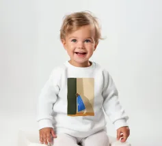 Onze baby sweatshirts bestaan uit 85% biologisch katoen en 15% gerecycled polyester.