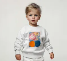 Onze baby sweatshirts bestaan uit 85% biologisch katoen en 15% gerecycled polyester.