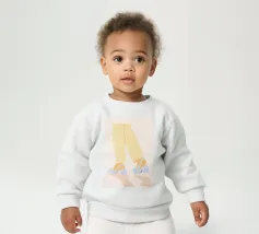 Onze baby sweatshirts bestaan uit 85% biologisch katoen en 15% gerecycled polyester.