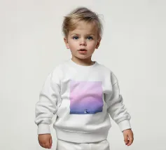 Onze baby sweatshirts bestaan uit 85% biologisch katoen en 15% gerecycled polyester.