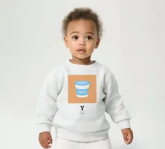 Onze baby sweatshirts bestaan uit 85% biologisch katoen en 15% gerecycled polyester.