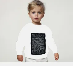 Alle baby sweatshirts worden geproduceerd en bedrukt door onze lokale betrouwbare partner.