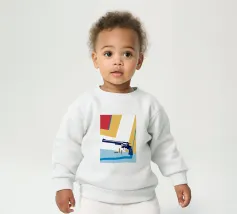 Onze baby sweatshirts bestaan uit 85% biologisch katoen en 15% gerecycled polyester.