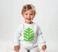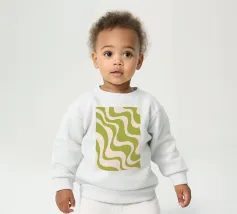 Onze baby sweatshirts bestaan uit 85% biologisch katoen en 15% gerecycled polyester.
