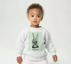 Onze baby sweatshirts bestaan uit 85% biologisch katoen en 15% gerecycled polyester.
