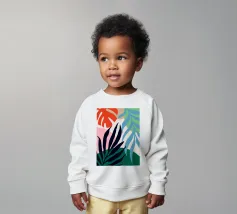 Onze baby sweatshirts bestaan uit 85% biologisch katoen en 15% gerecycled polyester.