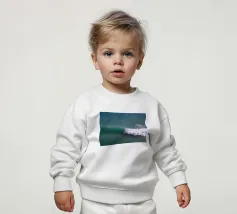 Onze baby sweatshirts bestaan uit 85% biologisch katoen en 15% gerecycled polyester.