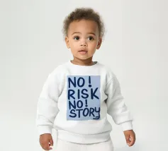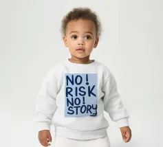 Onze baby sweatshirts bestaan uit 85% biologisch katoen en 15% gerecycled polyester.