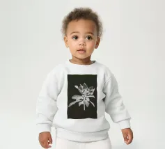 Onze baby sweatshirts bestaan uit 85% biologisch katoen en 15% gerecycled polyester.