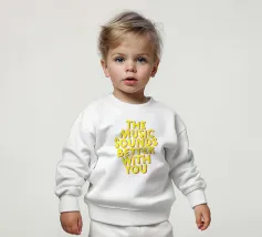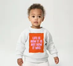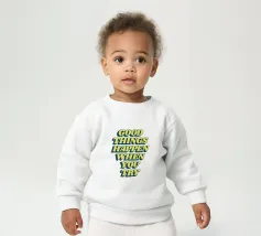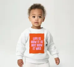 Onze baby sweatshirts bestaan uit 85% biologisch katoen en 15% gerecycled polyester.