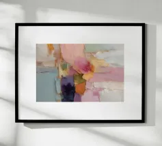 Deze kleurrijke illustratie toont gestileerde bloemen in felle oranje, gele, roze en groene tinten. De heldere lijnen en harmonieuze kleurvlakken geven het zomermotief een modern, vrolijk karakter. Een speels kunstwerk dat lichtheid, natuur en positieve energie uitstraalt.