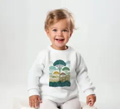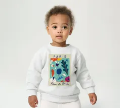 Onze baby sweatshirts bestaan uit 85% biologisch katoen en 15% gerecycled polyester.