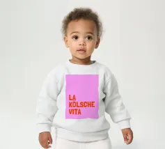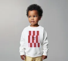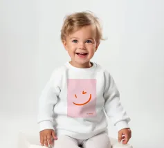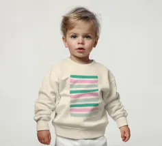 Onze baby sweatshirts bestaan uit 85% biologisch katoen en 15% gerecycled polyester.