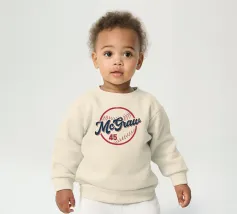 Onze baby sweatshirts bestaan uit 85% biologisch katoen en 15% gerecycled polyester.
