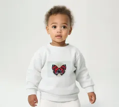 Onze baby sweatshirts bestaan uit 85% biologisch katoen en 15% gerecycled polyester.