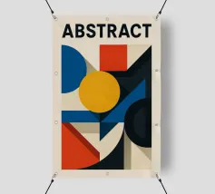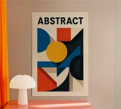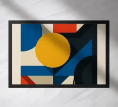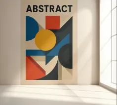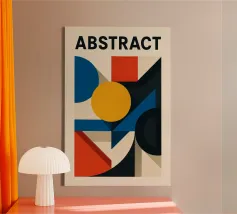 Een geometrische compositie met een puls. Primaire kleuren, scherpe contrasten, uitbarstende volumes. Deze "Abstracte" poster geeft een visuele stem aan moderne energie. Perfect om een witte muur op te vrolijken.