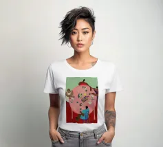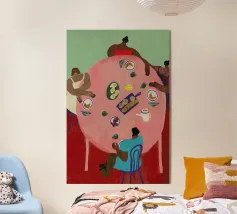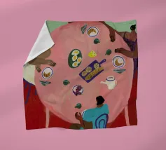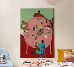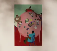 Vrouwen en hun vriendschappen. Dit is de focus van Dina Bukva's prachtige werken, die ze voornamelijk maakt op acryl. De kunstenares, die uit Kroatië komt en in Wenen woont, voltooide in 2018 haar master in grafisch en communicatieontwerp aan Central Saint Martins, om korte tijd later haar eigen merk, NUDES AND CROISSANTS, te lanceren. Het merk viert diversiteit in alle aspecten en vormen en is geïnspireerd door de schoonheid van het dagelijks leven. De korte animatiefilms van de kunstenares zijn op verschillende festivals vertoond en bekroond. Dina levert bijdragen aan Gault&Millau magazine en heeft al samengewerkt met merken als ZARA.