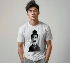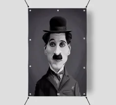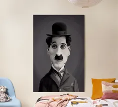Een humoristische karikatuurillustratie van de bekende Amerikaanse en Hollywood-acteur en vader van de slapstickkomedie; Charlie Chaplin. Een van een reeks karikaturen gemaakt voor de serie Celebrity Sunday, waarbij een beroemd persoon binnen een dag wordt weergegeven. Het idee is om ze te laten zien als op een pasfoto om consistentie te hebben.