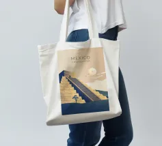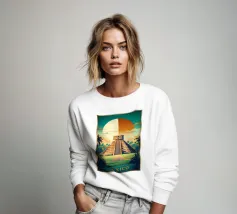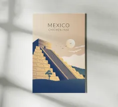 Deze prachtige gestileerde afbeelding toont de iconische piramide van Chichén Itzá in zachte, warme kleuren, waardoor een rustgevende en elegante uitstraling ontstaat. De subtiele tinten en verfijnde lijnen geven de poster een moderne en minimalistische sfeer, terwijl de indrukwekkende architectuur en rijke geschiedenis van deze bijzondere plek centraal blijven staan.