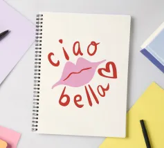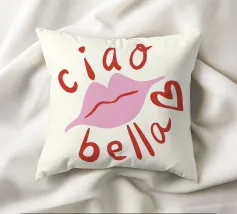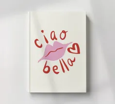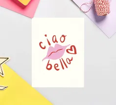 Een leuke en flirterige "Ciao Bella" print met knalrode tekst en roze lippen. Speels en luchtig, perfect om charme toe te voegen aan een slaapkamer, studentenhuis of galeriemuur.