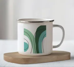 Gebogen lijnen in groene en turquoise tinten creëren een rustgevend, abstract patroon tegen een witte achtergrond. De zwarte contouren accentueren de organische stroom van de vormen.