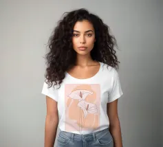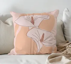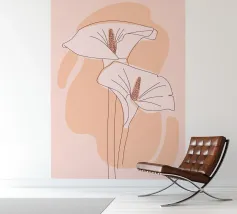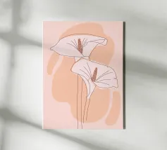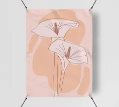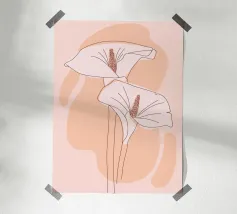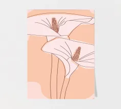 Dit elegante ontwerp heeft twee gestileerde bloemen in zachte roze- en beigetinten, omringd door zachte organische vormen. Het straalt lichtheid en elegantie uit en is perfect voor muurkunst, kussens of mokken. Ideaal voor liefhebbers van moderne, florale kunst die een natuurlijke en rustgevende sfeer willen creëren. Een tijdloze blikvanger voor je huis.