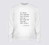 Een zin die je bijblijft. Deze poster vat een van Confucius' beroemdste wijze woorden typografisch helder samen: "Het maakt niet uit hoe langzaam je gaat, als je maar niet stopt." - Een herinnering aan geduld, doorzettingsvermogen en stille kracht. Het typemachinelettertype geeft het citaat een tijdloze, bijna literaire uitstraling. Zwart op wit, eenvoudig en direct - als een gedachte getypt op papier. Geen franje, geen ruis - alleen betekenis.