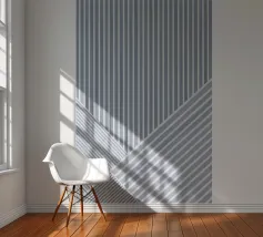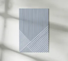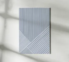 Abstract ontwerp met secties van diagonale en verticale witte lijnen op een lichtblauwe achtergrond, waardoor een dynamisch geometrisch patroon ontstaat. Ideaal voor modern decor en grafische ontwerpprojecten.
