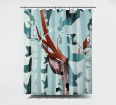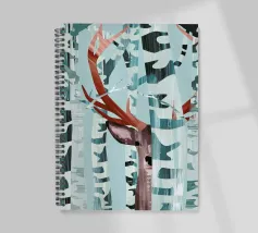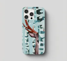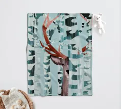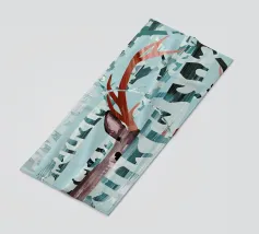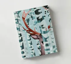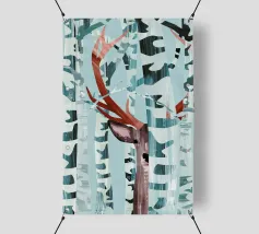 Kiekeboe! Een winters landschap met berkenbomen en een hert dat verstoppertje speelt in het bos.