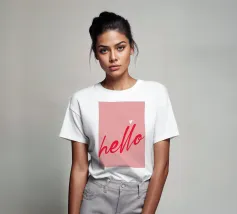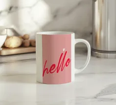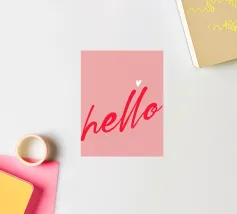 Fleur elke ruimte op met een eenvoudige, vrolijke groet. Op deze minimalistische print staat het woord "hallo" in vloeiend rood schrift met een lief wit hart tegen een zachtroze achtergrond. Perfect voor bij de ingang, op het bureau of in de kinderkamer.