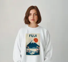 Een adembenemend uitzicht op de majestueuze berg Fuji die oprijst in de heldere lentehemel. Op de voorgrond dansen tere kersenbloesems (sakura) in de wind, waardoor de scène een poëtische lichtheid krijgt. De combinatie van de kracht van de natuur en de schoonheid van de bloesem symboliseert vergankelijkheid, harmonie en de diepe band tussen de Japanse cultuur en de natuur. Deze afbeelding vangt perfect de magie van het kersenbloesemseizoen - ideaal voor muurkunst, kalenders of reisagenda's. Tip: Perfect voor iedereen die droomt van reislust of een stukje Japanse rust en esthetiek in huis wil halen.