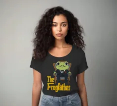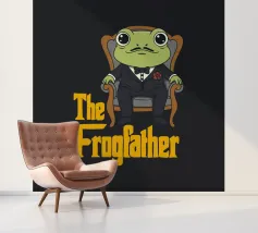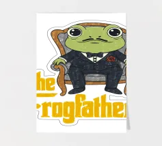 Een goed geklede kikker zit als een echte maffiabaas, met een smoking en een rode roos, in een slimme knipoog naar The Godfather. Deze parodie mengt klassieke cinema vibes met onweerstaanbare schattigheid. Perfect voor filmliefhebbers, kikkerfans en iedereen die houdt van een slimme en grappige draai aan iconische films.