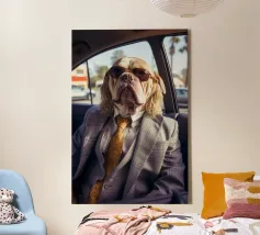 Absurde composities met mensenhonden. Mensenhonden die, net als wij, in Parijs, Los Angeles of Londen wonen en die, net als wij, gepassioneerd zijn door mode, auto's of helemaal niets. Honden die gedesillusioneerd, geamuseerd of geliefd zijn. Hippies en getatoeëerde honden. Kortom, honden die net als wij zijn. Of zijn wij zoals zij? Duik in de artistieke wereld van Dogland, een exclusieve collectie gewijd aan iedereen die zijn hond als een lid van de familie beschouwt. Hier is elke hondenposter een kunstwerk bedacht met humor, tederheid of elegantie. Of je nu een fan bent van buldoggen, teckels of corgi's, je zult de muurposter vinden die je huis zal laten blaffen van geluk. Geef je muren een honds accent met originele illustraties, afgedrukt op kwaliteitspapier, klaar om je interieur te sublimeren. Dogland is meer dan een winkel: het is een liefdesverklaring aan honden.