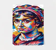 Vier de literaire genialiteit van Jane Austen met dit levendige WPAP Pop Art-ontwerp. Door het gebruik van gedurfde geometrische vormen en een rijk kleurenpalet geeft dit kunstwerk de geliefde schrijfster van Pride and Prejudice een nieuw beeld in een moderne, abstracte stijl. De WPAP-techniek (Wedha's Pop Art Portrait) vangt Austens tijdloze charme en geestigheid en weerspiegelt haar belangrijke bijdragen aan de literatuur en sociaal commentaar. Dit ontwerp is perfect voor literatuurliefhebbers, kunstliefhebbers en fans van klassieke romans en vormt een uniek eerbetoon aan een van de meest geliefde auteurs uit de Engelse literatuur.