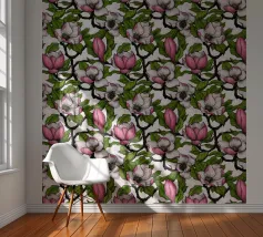Handgetekend vectorpatroon met magnoliabloemen