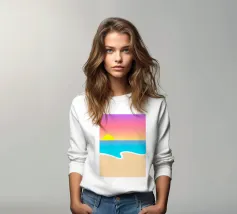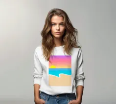 Zachte golven kabbelen over een glasachtig oppervlak en weerspiegelen een zachte hemel in blauwe en lichte tinten. De horizon strekt zich wijd en open uit en roept rust, helderheid en het langzame ritme van de natuur op. Minimaal en sereen, dit kunstwerk nodigt uit tot diep ademhalen, rustige gedachten en het tijdloze comfort van de zee.