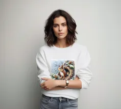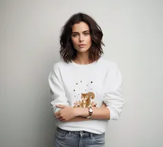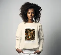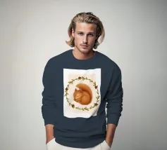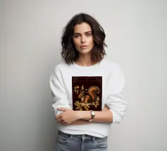 Max, de kleine eekhoorn, is afgebeeld in zachte waterverf binnen een fijne cirkel. Met zijn pluizige vacht en levendige ogen straalt hij een speelse en vrolijke energie uit. De minimalistische achtergrond benadrukt de eekhoorn en maakt het een perfecte decoratie voor kinderkamers of als schattig ontwerp op T-shirts en andere items.