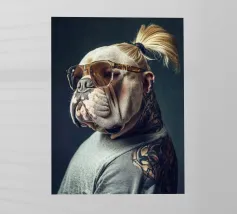 Absurde composities met mensenhonden. Mensenhonden die, net als wij, in Parijs, Los Angeles of Londen wonen en die, net als wij, gepassioneerd zijn door mode, auto's of helemaal niets. Honden die gedesillusioneerd, geamuseerd of geliefd zijn. Hippies en getatoeëerde honden. Kortom, honden die net als wij zijn. Of zijn wij zoals zij? Duik in de artistieke wereld van Dogland, een exclusieve collectie gewijd aan iedereen die zijn hond als een lid van de familie beschouwt. Hier is elke hondenposter een kunstwerk bedacht met humor, tederheid of elegantie. Of je nu een fan bent van buldoggen, teckels of corgi's, je zult de muurposter vinden die je huis zal laten blaffen van geluk. Geef je muren een honds accent met originele illustraties, afgedrukt op kwaliteitspapier, klaar om je interieur te sublimeren. Dogland is meer dan een winkel: het is een liefdesverklaring aan honden.