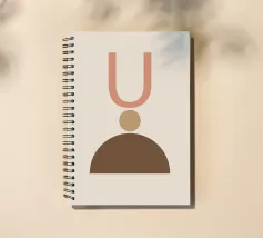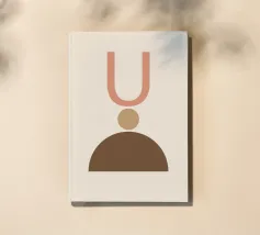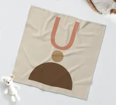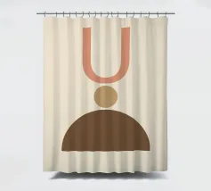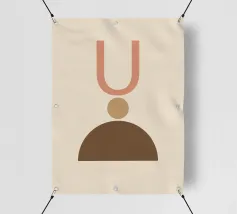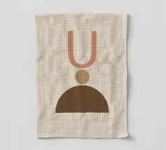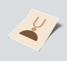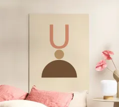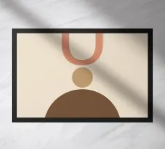 Geometrische vormen in gedempte tinten vormen een abstracte compositie. Een U-vorm, een cirkel en een halve cirkel creëren een minimalistisch ontwerp.