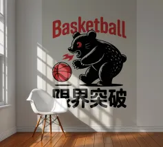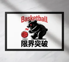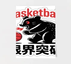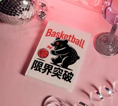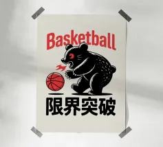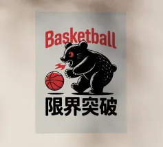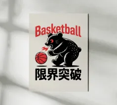 Dynamisch ontwerp met basketbalmotief en een woeste zwarte beer die met vurige intensiteit een bal dribbelt. De kanji "限界突破" (Limit Break) is geïnspireerd op de Japanse straatcultuur en geeft de geest weer van het verleggen van grenzen. Gedurfde lijnen, agressieve energie en culturele samensmelting maken dit kunstwerk tot een opvallende basketbalvisual.