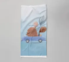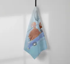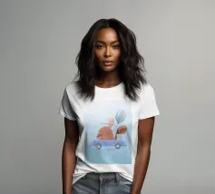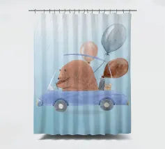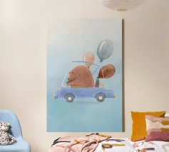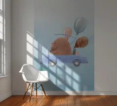 Een grillige illustratie met een vrolijke beer die een kleine blauwe auto bestuurt in de regen, vergezeld door kleurrijke ballonnen. De zachte aquarelstijl en speelse elementen maken het perfect voor een kinderkamer of als ontwerp voor kleding en accessoires. Deze charmante scène straalt warmte en vreugde uit ondanks het regenachtige weer en symboliseert de geest van avontuur. Dit prachtige ontwerp kan worden geplaatst op Hoodies, T-shirts (kinderen en volwassenen), posters, notitieboekjes, handdoeken, kinderkleding en accessoires.