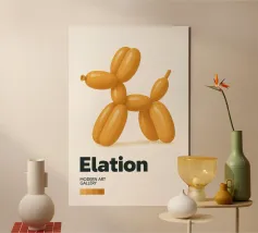 "Elation" is een modern eerbetoon aan iconische ballonhondensculpturen - minimalistisch, speels en harmonieus van kleur. De gele hond straalt pure vreugde uit en brengt lichtheid aan elke muur. Ideaal voor moderne woonruimtes, creatieve studio's of galerielooks met een twinkeling in de ogen. Een kunstwerk tussen design, popcultuur en emotionele symboliek.
