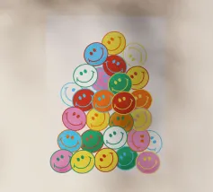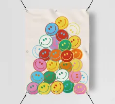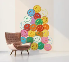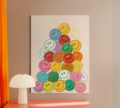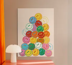 Verspreid een glimlach met deze vrolijke smileyprint! Een waterval van kleurrijke, vrolijke gezichten brengt een vleugje vreugde en eigenzinnigheid in elke kamer. Perfect om een dosis positiviteit toe te voegen aan je huis of kantoor. Een leuk en opbeurend cadeau.